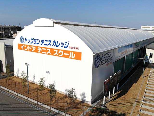トップランテニスカレッジ明石大久保校は、 テニス初心者でも始めやすいインドア・アウトドア対応のテニススクールです。