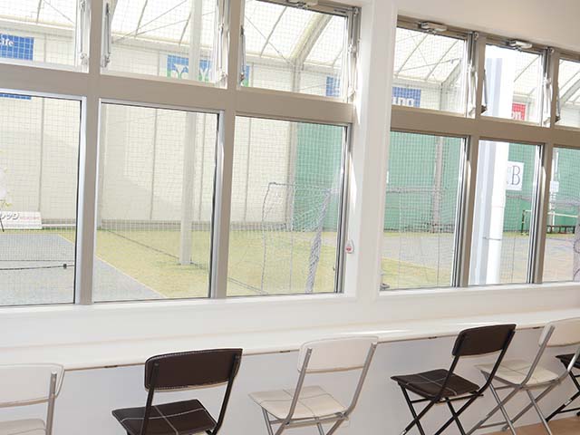 最新鋭のインドアコートシステムを導入し、天井部分は換気が出来、側面のカーテンも開閉式で十分に換気の出来る環境になっているため、一年中快適にテニスをしていただける環境を整えております。