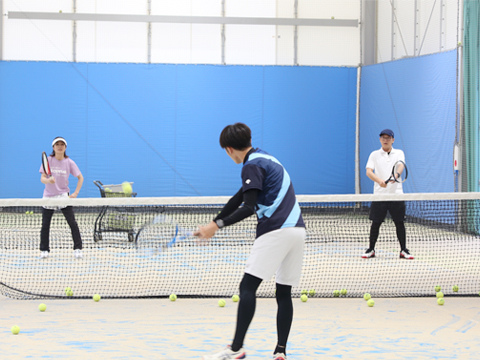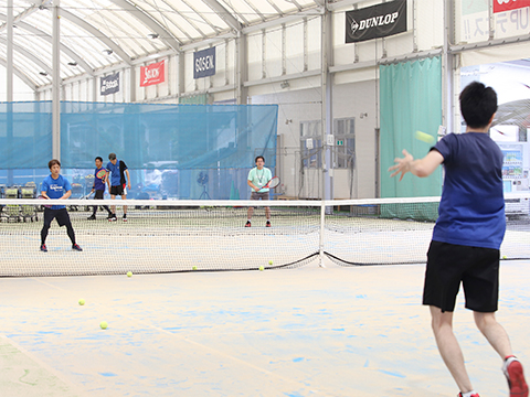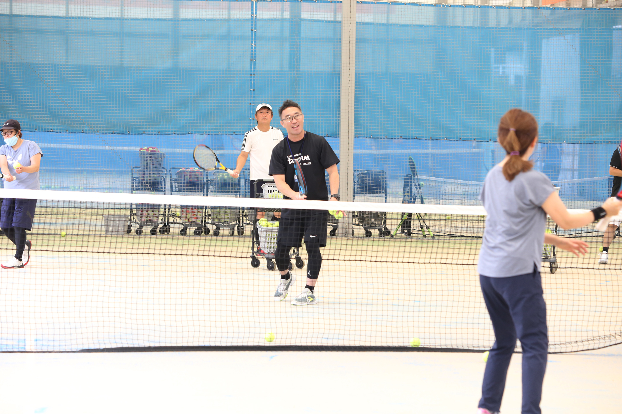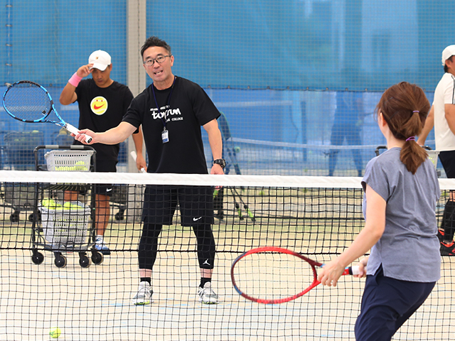 テニス初心者は「テニスを楽しむ」ことから始め、レベルに合わせて上達をサポートします。